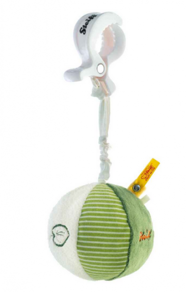 Der Baby Rassel-Ball, der in keinem Babysortiment fehlen solltel ist an einer Klammer befestigt, welche wiederrum am Maxi Cosi, am Kinderwagen oder Kinderbett angebracht werden kann. Babys können von dem Rasseln und Knistern kaum genug bekommen und der Ball fördert somit spielerisch die Sinne der Kleinen. Der Ball hat eine Größe von 8 cm und ist aus Baumwolle.